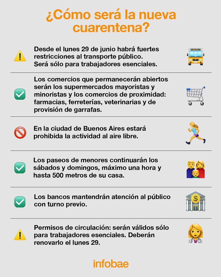 A continuación, detalles de cómo será la nueva cuarentena para Capital Federal y Gran Buenos Aires (infografía de Infobae):