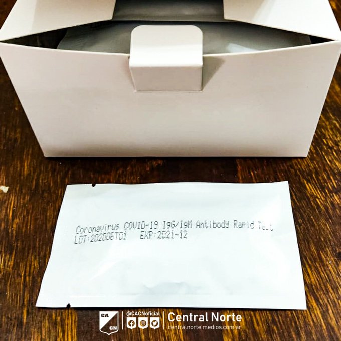 Central Norte recibió 40 test rápidos para someter al plantel a las pruebas de coronavirus. Los jugadores serán testeados cuando se disponga la nueva fecha de inicio de entrenamientos en el Federal A.